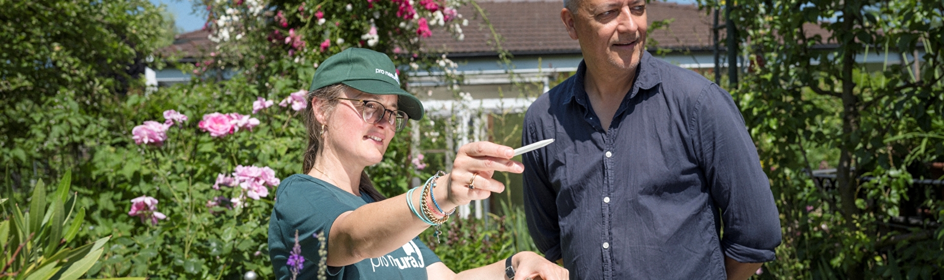 Die privaten Gärten der Schweiz bedecken insgesamt eine Fläche, die etwa so gross wie der Bodensee oder dreimal so gross wie der Nationalpark ist: ein enormes Potenzial für die Biodiversität, wenn Gestaltung und Pflege naturnah erfolgen! Mit BONJOUR NATURE bietet Pro Natura in Zusammenarbeit mit der Stadt Dübendorf Privatpersonen direkt vor Ort kostenlose Beratung an, zum Beispiel um eine Wildhecke, eine Blumenwiese, einen Teich oder einfache Steinhaufen anzulegen. Es sind keine Vorkenntnisse erforderlich: Schon kleine Massnahmen können viel bewirken.