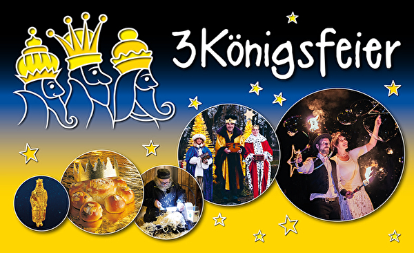 Drei edel gekleidete Könige aus dem Morgenland erscheinen auf dem Vorplatz zum Verteilen der traditionellen 3Königskuchen. (CHF 2.- pro Stück / CHF 14.- ganzer 3Königskuchen). «Es hät solang s'hät!»
